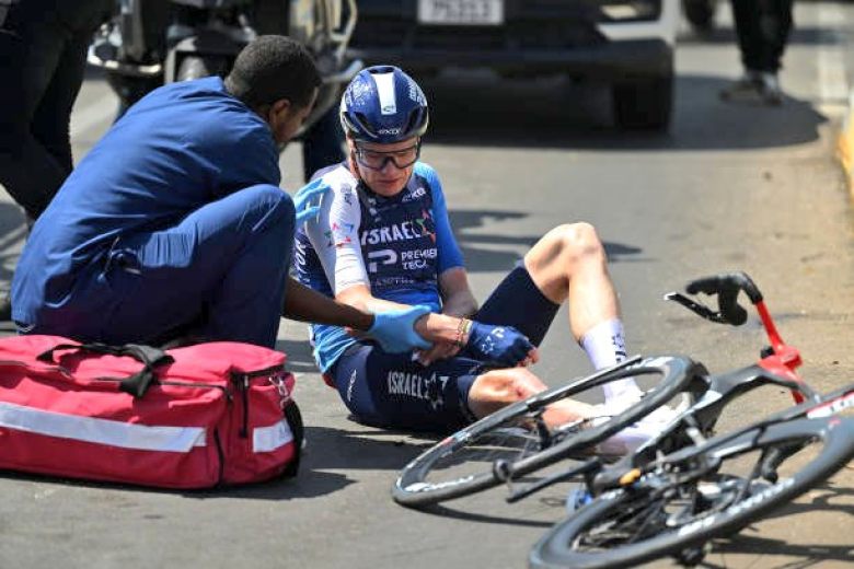 Preuve de la violence du choc, son vélo a été totalement détruit sous l'impact. Contraint à l'abandon après s'être tenu l'épaule, Froome a ensuite passé des examens qui ont révélé "une fracture distale non déplacée de sa clavicule droite", a précisé la formation israélienne dans un communiqué. "Chris sera examiné demain (lundi) par un chirurgien orthopédiste à Dubaï pour déterminer si une intervention chirurgicale sera nécessaire pour stabiliser la fracture".