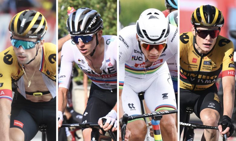 Vélo d'OrLa cérémonie du Vélo d'Or, petit frère du Ballon d'Or, c'est ce mardi 24 octobre où le trophée va être remis au meilleur coureur du peloton cette saison. Après une saison encore une fois exceptionnelle, la rubrique cyclisme de L'Équipe et la rédaction de Vélo Magazine, organisateurs de l'évènement, ont fait une liste des 10 coureurs pouvant prétendre à ce trophée : Remco Evenepoel (BEL / Soudal Quick-Step), Mads Pedersen (DAN / Lidl-Trek), Jasper Philipsen (BEL / Alpecin-Deceuninck), Tom Pidcock (GBR / INEOS Grenadiers), Tadej Pogacar (SLO / UAE Team Emirates), Primoz Roglic (SLO / Jumbo-Visma), Wout Van Aert (BEL / Jumbo-Visma), Mathieu van der Poel (NED / Alpecin-Deceuninck), Jonas Vingegaard (DAN / Jumbo-Visma) et Adam Yates (GBR / UAE Team Emirates). Parmi ces 10 coureurs, la rédaction de Cyclism'Actu vous propose de faire le point sur les 4 grands favoris à cette prestigieuse distinction.