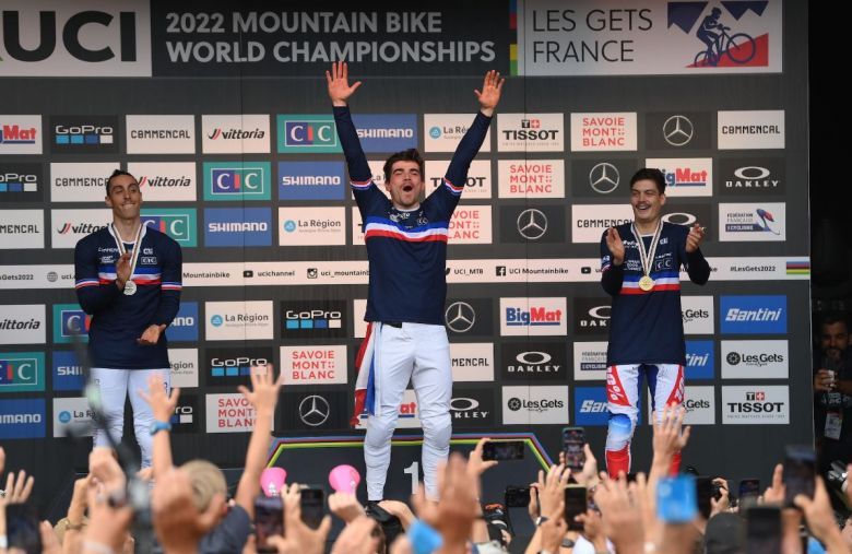 VTT - MondiauxVainqueur d'un cinquième titre mondial en VTT descente (après 2015, 2017, 2018 et 2019), Loïc Bruni a pu partager la joie d'être sur le podium avec deux compatriotes : Amaury Pierron et Loris Vergier. Un titre d'autant plus particulier que les championnats de France ont lieu sur la piste des Gets. "C'est incroyable de gagner à nouveau ce titre aux Mondiaux, et surtout c'est magnifique de le faire ici, en France. Et qu'on soit trois Français sur le podium, c'est historique ! Je reviens de loin cette année", explique le pilote français dans des propos rapportés par L'Equipe.