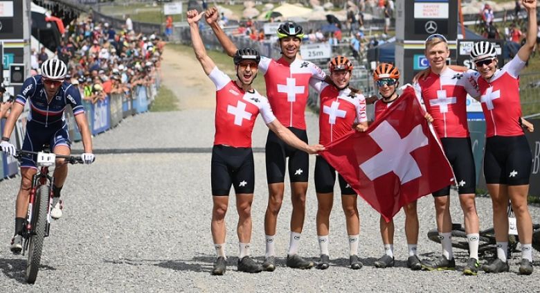1. Suisse (Dario Lillo, Khalid Sidahmed, Ramona Forchini, Ronja Blochlinger, Anina Hutter, Nino Schurter)