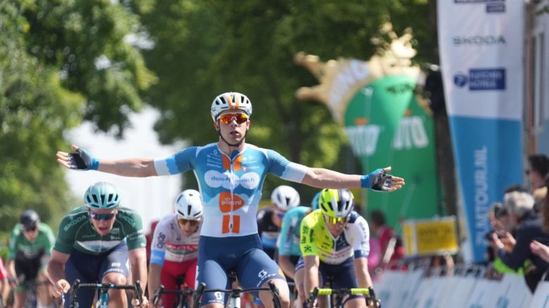 Malgré le travail de la Visma | Lease a Bike, d’Intermarché-Wanty et de la Polti-Kometa l’écart stagne et les 7 fuyards ont 30 secondes d’avance à 7 kilomètres de l’arrivée. Le suspense est total. Mais à 800 mètres de la ligne, le peloton revient et les équipiers emmènent leur sprinteur. Van Uden est le premier à lancer et prendre quelques mètres d’avance. Le Néerlandais ne sera jamais revu. Derrière, Strytsa prend la 2e place devant Thijssen. Giovanni Lonardi (Polti-Kometa) termine 4e devant Mattia Pinazzi (VF Group-Bardiani CSF). C’est la 3e victoire de Van Uden cette année. Rune Herregodts reste leader du classement général.