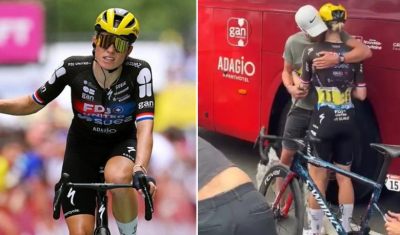 Une fois arrivée à son bus avec la mine des mauvais jours, Vollering a fondu en larmes dans les bras de son compagnon, Jan. Même si elle a ensuite fait l'effort de remonter sur home-trainer pour récupérer, la vainqueure du Tour Femmes 2023 semblait bien touchée, et son équipe a publié tard dans la soirée un communiqué pour préciser la situation de sa coureuse. "Les examens menés par le médecin de l’équipe révèlent que Demi Vollering souffre de multiples contusions. Dans la soirée, Demi a passé une première évaluation pour une suspicion de commotion cérébrale. L’encadrement médical de l’équipe, Demi Vollering et le management FDJ-SUEZ ont conjointement pris la décision de ne pas se rendre à l’hôpital dans la soirée, compte tenu de l’absence de caractère d’urgence lié à son état médical."