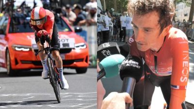 Tour de FranceAuteur d’un contre-la-montre solide mais sans éclat sur la 5ᵉ étape du Tour de France, Geraint Thomas (INEOS Grenadiers) a analysé avec lucidité les subtilités d’un parcours usant et exigeant. 31e à l'arrivée à plus de 2'30 du vainqueur du jour, Remco Evenepoel (Soudal Quick-Step), le Gallois a déjà concédé plus de 10 minutes aux principaux protagonistes du classement général. Si le vainqueur du Tour de France 2018 ne jouera pas le maillot jaune pour son dernier Tour, il ne prend pas moins de plaisir et profite de ses derniers tours de roues sur les routes françaises.