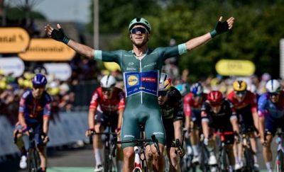 Tour de FranceToutes les conditions étaient réunies ce samedi 12 juillet pour vivre la journée la moins trépidante de ce début de Tour de France... et ça n'a pas manqué ! Si vous n'avez pas pu suivre cette 8e étape de 171.4 km plate comme la main et destinée aux spinteurs, vous n'avez pas raté grand chose car après plusieurs jours intenses, le peloton s'est offert un moment de répit sur cette 112e édition en direction de Laval. Seule une belle mais vaine échappée en deuxième partie de course de Mathieu Burgaudeau et Mattéo Vercher (TotalEnergies) - tous les deux désignés combatifs du jour - est venue perturber la sieste de certains en cette après-midi calme et ensoleillée, avant que cette longue procession ne se termine avec un final très rapide et le sprint massif attendu. Et au terme d'un dernier kilomètre en faux plat montant, c'est Jonathan Milan (Lidl-Trek) qui a imposé sa puissance pour décrocher sa première victoire sur le Tour dès sa première participation !