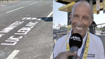 Oui ça va être sympa parce que Pogi quand il va attaquer, il va voir du Lucho par terre (rires). Il y a marqué "Lucho", "la montée Luc Leblanc 1994". Il ne va voir que ma tronche ! Et en plus avec les bornes, s'il se retourne il verra quelques bornes aussi sur le côté de la route. Puisqu'il y a 6 bornes d'1m50 sur 90 cm de large qui ont été fabriquées par l'organisation, avec moi en photo à l'époque et un QR code que les gens vont pouvoir flasher pour voir le reportage de 5 minutes sur la montée de l'époque. C'est sympa et c'est unique, c'est une première. Je suis content. Ma grande journée ce sera ça, mais c'est aussi surtout que ma fille soit à mes côtés et qu'elle voit ce qu'a fait son papa à l'époque. Et ça c'est chouette.
