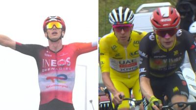 Alors que le groupe de poursuivants perd du champ et va bientôt être repris par le peloton, Thymen Arensman résiste bien et compte la même avance au pied de Luchon-Superbagnères (12,6km à 7,5%), la dernière ascension du jour. Les coéquipiers de Pogacar continuent d'emmener un rythme élevé, mais pas ahurissant. Arensman ne perd quasiment rien sur les premiers kilomètres, alors que Matteo Jorgenson (Visma | Lease a Bike) est distancé et semble complètement lâcher prise. Tandis que Felix Gall (Decathlon AG2R) passe à l'attaque dans le peloton et prend quelques secondes d'avance sur le peloton. A un peu plus de 5 kilomètres du sommet, le Néerlandais compte 2' sur Gall et 2'20" sur le groupe Maillot Jaune, tandis que Kévin Vauquelin (Arkéa-B&B Hotels) est légèrement distancé. Et c'est au tour de Jonas Vingegaard (Visma | Lease a Bike) de passer à l'attaque, mais Pogacar parvient à suivre. Malgré un petit contre, le Slovène reste dans un rôle défensif et laisse le Danois faire le boulot. Alors que Thymen Arensman perd du temps, mais parvient à résister et vient s'imposer au sommet de Luchon-Superbagnères ! Sa 2e victoire sur un Grand Tour, après un succès sur La Vuelta en 2022. Derrière, à une minute, Tadej Pogacar règle Jonas Vingegaard au sprint et grappille de nouveau 6 secondes (4" d'écart et 2" de bonifications). Felix Gall (4e à 1'19") et Florian Lipowitz (5e à 1'25", Red Bull-BORA-hansgrohe) sont les meilleurs du reste du monde ce samedi. Oscar Onley (6e à 2'09", Picnic PostNL), Ben Healy (7e à 2'46", EF Education-EasyPost), Primoz Roglic (8e à 2'46", Red Bull-BORA-hansgrohe) et Tobias Johannessen (9e à 2'59") terminent avec moins de 3 minutes de retard. Kévin Vauquelin, 10e du jour, concède lui 3'08" au vainqueur.