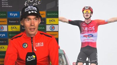 "Je ne sais pas, je n’arrive pas vraiment à y croire", débute le Néerlandais de 25 ans. "C’est déjà une année incroyable, surtout après le Giro, et j’ai été malade ensuite. Malgré ça, j’ai eu une bonne préparation. Pour mon premier Tour, je voulais juste vivre l’expérience et rester patient pendant la première semaine car c’était assez chaotique. Il fallait attendre les montagnes. À ma première opportunité, j’ai fini deuxième au Mont-Dore, c’était déjà incroyable. Mais aujourd’hui, c’est encore autre chose. Carlos [Rodriguez] était super fort aussi, il a vraiment bien travaillé pour moi. Je pense que j’étais dans la forme de ma vie aujourd’hui. Quand j’ai entendu l’écart avec le groupe des favoris dans les descentes, je me suis dit : "Trois, trois minutes et demie sur Tadej et Jonas, ce n’est sans doute pas assez." Alors je me suis dit : "Peut-être que c’est suicidaire, peut-être pas."