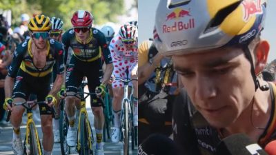 L’ancien maillot vert du Tour de France a déclaré : "C’est allé très vite, j’ai juste vu 48 de moyenne, et c’est pas du tout plat, donc ouais... euh, ça roule toute la journée, et au final, c’était déjà très dur la première montée du Mur. Et oui, comme ça, c’est de nouveau une bataille contre les gars du classement général. Bah, c’était peut-être pour faire travailler UAE, comme ça, ils ont peut-être moins de coureurs pour lancer la montée finale. Donc ça, c’était l’idée, mais oui, ils sont assez forts, donc à la fin, il était aussi là. Oui, j’ai essayé de m’échapper une fois de plus, mais avant l’étape, je pensais que seuls les UAE Team Emirates auraient vraiment la confiance et l’intérêt nécessaires pour poursuivre une échappée afin de remporter l’étape. Mais j’ai rapidement vu qu’Alpecin Deceuninck venait les aider, et cela a commencé à devenir assez difficile pour nous de nous échapper. Mais nous avons essayé, et ensuite, nous sommes passés au plan final, qui consistait à rendre la course difficile, parce que nous pensions que cela serait favorable à Jonas [Vingegaard]", conclut Wout Van Aert à l’arrivée de cette 7e étape du Tour de France.