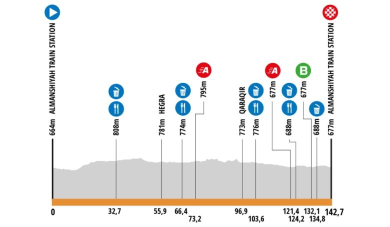 Mardi 28 janvier - étape 1 : Al Manshiyah Train Station - Al Manshiyah Train Station, 142,7 km (départ à 11h / arrivée vers 14h14)
