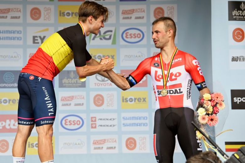 Victor Campenaerts (Lotto-Soudal) n'a pas profité de l'absence de l'ancien double champion belge du contre-la-montre (2018 et 2019) Wout Van Aert (Jumbo-Visma) pour glaner un troisième titre national ce vendredi. Et pour cause, Remco Evenepoel (Quick-Step Alpha Vinyl), qui faisait figure de favori après ses récentes performances chronométrées - encore vainqueur du contre-la-montre final du Tour de Suisse tout dernièrement -, s'est gardé le plaisir du succès. Le spécialiste de la Lotto-Soudal n'a pourtant pas démérité, réitérant la performance de l'an passé avec une belle 3e place. Il concède toute de même presque 1' sur le dauphin de la course, le champion sortant Yves Lampaert, lui-même 37'' plus lent que son coéquipier Remco Evenepoel. La formation belge a relayé les propos de son champion de 30 ans.