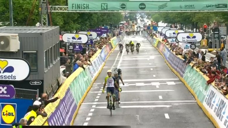 Chutes, attaques, grosses averses... voici un peu le résumé de la la 102e édition de la Brussels Cycling Classic qui a eu lieu ce dimanche. Sous une pluie battante pendant une grande majorité du parcours, plusieurs coureurs ont tenté de déjouer les pronostics. À 20 kilomètres de l'arrivée, ils étaient encore dix à l'avant, avec notamment Bram Welten (Groupama-FDJ), Taco van der Hoorn (Intermarché-Wanty-Groupe Matériaux) ou encore Jelle Wallays (Cofidis). Ce groupe possédait pratiquement une minute d'avance sur un peloton emmené par l'équipe Lotto-Soudal. L'écart passait sous la minute à 15 bornes de l'arrivée.