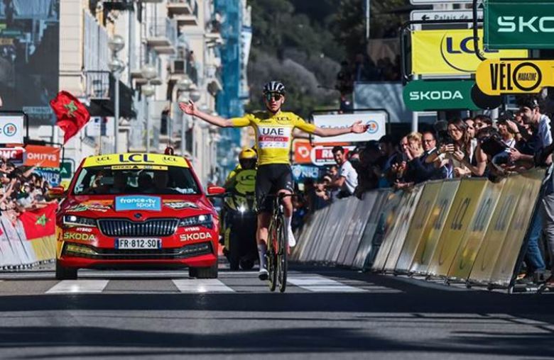 Et alors que Simon Yates (Team Jayco-AlUla) - 4e du général - place une première attaque, Tadej Pogacar (UAE Team Emirates) contre et laisse sur place ses adversaires dont Jonas Vingegaard (Team Jumbo-Visma), Matteo Jorgenson (Movistar Team) et David Gaudu (Groupama-FDJ), ce dernier tente de réduire l'écart. Mais le natif de Komenda écoeure définitivement ses rivaux et s'envole seul en tête de course. Le leader de Paris-Nice se présente ainsi seul à l'entrée de la promenade des Anglais. Royal, il s'offre ainsi une troisième victoire d'étape sur la course au Soleil, sans parler du classement général où il succède au palmarès à son compatriote Primoz Roglic. Tadej Pogacar est tout simplement impressionnant. Jonas Vingegaard et David Gaudu complètent le podium de l'étape. Ils accompagnent Pogacar sur le podium final mais dans le sens inverse : le Français termine ainsi 2e du général.