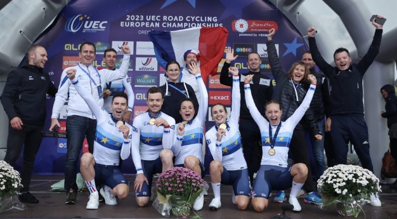 #EuroRoad23 #Drenthe2023 L'équipe de France devient championne d'Europe de relais mixte ! Les héros du jour sont Audrey Cordon-Ragot, Cédrine Kerbaol, Juliette Labous, Bruno Armirail, Rémi Cavagna et Benjamin Thomas. À suivre sur https://t.co/hItDtvxPXA pic.twitter.com/Udq0u7rYkX