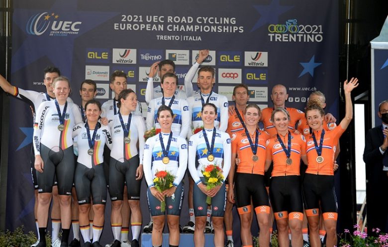 Double championne du monde en titre mais jamais sacrée au niveau continental, la Suisse semblait être la favorite, mais le forfait sur blessure de l'une de ses locomotives, l'ancien double champion d'Europe du chrono Stefan Küng - remplacé par Fabio Christen - va assurément grandement la fragiliser, même si elle pourra toujours s'appuyer sur Stefan Bissegger, deuxième mercredi en individuel derrière le Britannique Joshua Tarling, et Marlen Reusser, titrée pour la troisième fois consécutive il y a quelques heures.
