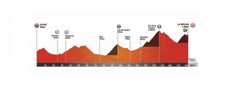 La Molina (km 180,6 / 1ère catégorie) : 12,2 km à 4,4% (les premiers 8,4 km à 6,5%)