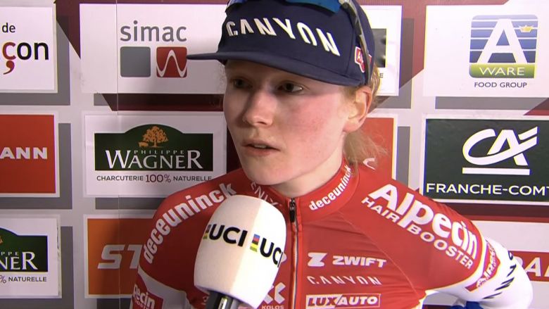 La 14e et dernière manche de la Coupe du Monde de cyclo-cross se déroulait en France, à Besançon, et c'est la grande favorite du jour, Puck Pieterse (Alpecin-Deceuninck) qui s'est imposée. Malgré un problème mécanique dans le premier tour, la nouvelle championne des Pays-Bas a écrasé la course. "J'avais de bonnes sensations aujourd'hui. J'ai déraillé dans le premier tour. J'ai eu un peu de mauvaise chance, mais je suis revenue très fort et puis j'ai décidé d'y aller en solitaire", déclare Pieterse à l'arrivée.