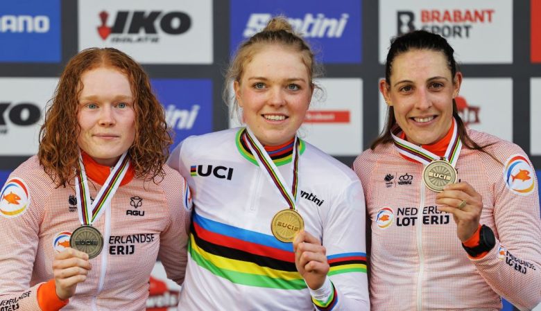 "C'est très fou", a poursuivi Van Empel, déjà sacrée sur le relai mixte vendredi. "C'est une belle récompense pour l'ensemble de la saison. J'avais les bonnes personnes derrière moi, je veux toutes les remercier de m'avoir aidée. En outre, dans l'équipe nationale, nous nous sommes bien entraidées, alors qu'en temps normal, nous sommes adversaires". A seulement 20 ans, la native de 's-Hertogenbosch peut se targuer d'être la deuxième plus jeune championne du monde de cyclocross, juste derrière une certaine... Marianne Vos, sa coéquipière à qui elle succède au palmarès. "C'est un moment très spécial pour moi. Le public était également très enthousiaste aujourd'hui (samedi). Je n'ai jamais vu autant de personnes rassemblées dans une course avant". Un passage de témoin symbolique alors que la nouvelle génération batave a pris la pouvoir cette saison, encore illustrée par le triplé Van Empel-Pieterse-Brand.