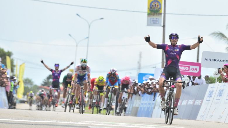 Miguel Angel Fernandez Ruiz (Burgos-BH) a remporté la 5e étape de La Tropicale Amissa Bongo 2023 ! L'Espagnol de 25 ans a pu lever les bras pour la première de sa carrière professionnelle. Il a su s'imposer au sprint devant Geoffrey Soupe (TotalEnergies) et Henok Mulubrhan (Sélection Erythréenne). A noter que cette étape était la plus rapide de l'histoire de La Tropicale, avec une moyenne de 49,54km/h. Au classement général, Jason Tesson (TotalEnergies) conserve la tête devant son coéquipier Geoffrey Soupe et Henok Mulubrhan. Demain, pour la 6e et avant-dernière étape, les coureurs parcourront un circuit autour de Port-Gentil, aucune difficulté n'est à signaler et les sprinteurs devraient encore une fois se jouer la gagne.