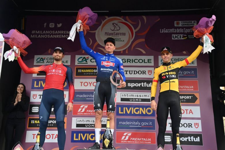 Soixante-deux ans après son grand-père Raymond Poulidor, vainqueur en 1961, Mathieu van der Poel a remporté ce samedi la 114e édition de Milan-San Remo, et ce comme il l'avait rêvé, c'est-à-dire en solitaire ! Parti seul juste avant le sommet du Poggio, le Néerlandais de l'équipe Alpecin-Deceuninck s'est imposé avec quelques secondes d'avance sur un trio réglé au sprint par Filippo Ganna (ITA / INEOS Grenadiers) devant Wout Van Aert (BEL / Jumbo-Visma) et Tadej Pogacar (SLN / UAE Team Emirates), qui échoue ainsi au pied du podium après avoir été le premier des cadors à passer à l'attaque dans le juge de paix de la Classicissima.