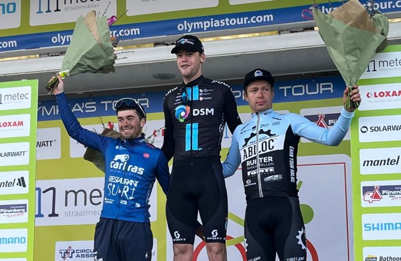 La 4e étape de l’Olympia’s Tour a vu la victoire du Néerlandais Enzo Leijnse ce samedi à Tiel, sa première sur le circuit professionnelle à 21 ans. Au terme d'un parcours de 161 kilomètres presque entièrement plat, le coureur de l'équipe réserve du Team DSM s'est imposé en solitaire après s'être débarrassé de son compagnon de fuite Magnus Bak Klaris (Restaurant Suri-Carl Ras), finalement 2e à 5 secondes. Partis sur le circuit final une fois l'échappée matinale reprise, les deux hommes ont su résister jusqu'à la ligne au retour d'un peloton réduit à une trentaine d'unités et réglé au sprint 49" plus tard par le Letton Martins Pluto (À Bloc CT). Pas de changement au classement général, le Danois Emil Mielke Vinjebo (Leopard TOGT Pro Cycling), leader depuis jeudi, conserve sa tunique avec 4" d'avance sur Lars Boven (Jumbo-Visma Development Team), alors qu'il reste encore une étape escarpée à disputer dimanche autour de Beek.