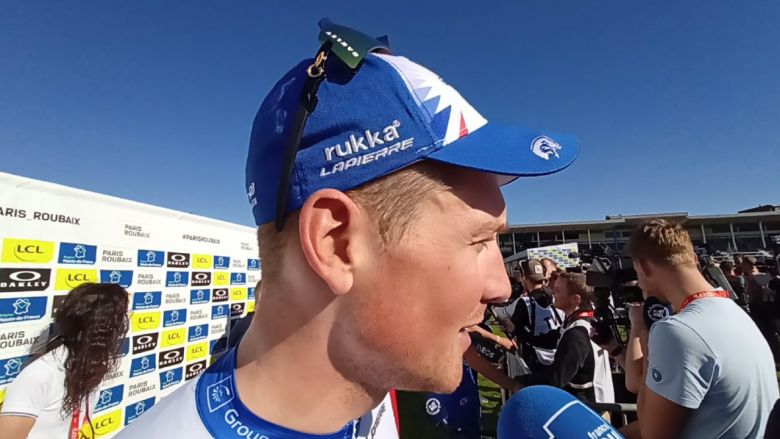 "A la fin c'était un peu tactique, j'ai essayé plusieurs fois, c'était pas le bon coup, mais on a été capable physiquement avec Wout Van Aert d'aller chercher le podium, on a tout donné pour revenir sur les autres. Je suis quand même fier et content de ma course aujourd'hui et un grand merci à mon équipe qui m'a aidé à renverser la situation. J'ai fait une très bonne campagne de Classiques mais le podium ici à Roubaix c'est spécial, surtout sur une course comme ça où les deux devant étaient tellement forts, je ne peux pas avoir de regrets." confie le Suisse au micro de Sports 59/62.