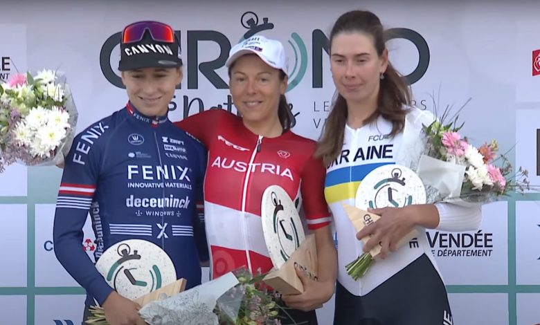 L'Autriche était à l'honneur ce dimanche du côté de l'épreuve féminine du Chrono des Nations 2023, disputée sur 27.2 km autour des Herbiers ce dimanche. A 32 ans, Anna Kisenhofer est ainsi devenue la toute première Autrichienne à remporter cette course contre-la-montre, traditionnel rendez-vous de fin de saison des meilleurs rouleurs et rouleuses du peloton. Grâce à un temps de 36 minutes et 23 secondes, la championne d'Autriche du chrono - qui portait pour l'occasion le maillot de sa sélection nationale plutôt que celui d'Israel-Premier Tech Roland - a devancé pour une petite seconde sa compatriote Christina Schweinberger (Fenix-Deceuninck), l'Ukrainienne Valeriya Kononenko complètant ce podium à 19". Coralie Demay (St Michel-Mavic-Auber 93) et Marie Le Net (FDJ-SUEZ) terminent 9e et 10e côté Françaises. Anna Kisenhofer succède au palmarès à la Néerlandaise Ellen van Dijk.