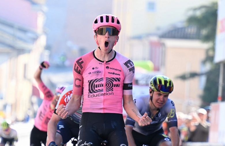 Au lendemain de la victoire en solitaire de Rémi Cavagna (Soudal Quick-Step) à Riccione, la Semaine Internationale Coppi & Bartali se poursuivait ce mercredi avec une 2e étape qui se concluait à Longiano. Au sommet du Mur du Belvédère, avec ses 900 mètres à plus de 10% de moyenne, c'est l'Américain Sean Quinn qui s'est montré le plus fort ! Membre d'un groupe de sept coureurs qui s'est joué la victoire, le membre de la formation EF Education-EasyPost a devancé le Suisse Mauro Schmid (Soudal Quick-Step), l'Italien Walter Calzoni (Q36.5 Pro Cycling Team) et son coéquipier britannique James Shaw. Deuxième du classement général avant cette 2e étape, Mauro Schmid prend le pouvoir aux dépens de son coéquipier Rémi Cavagna, qui a coincé ce mercredi, ne finissant que 40e à 3'22". Au général, Schmid possède respectivement 2 et 8 secondes de marge sur Quinn et Calzoni.