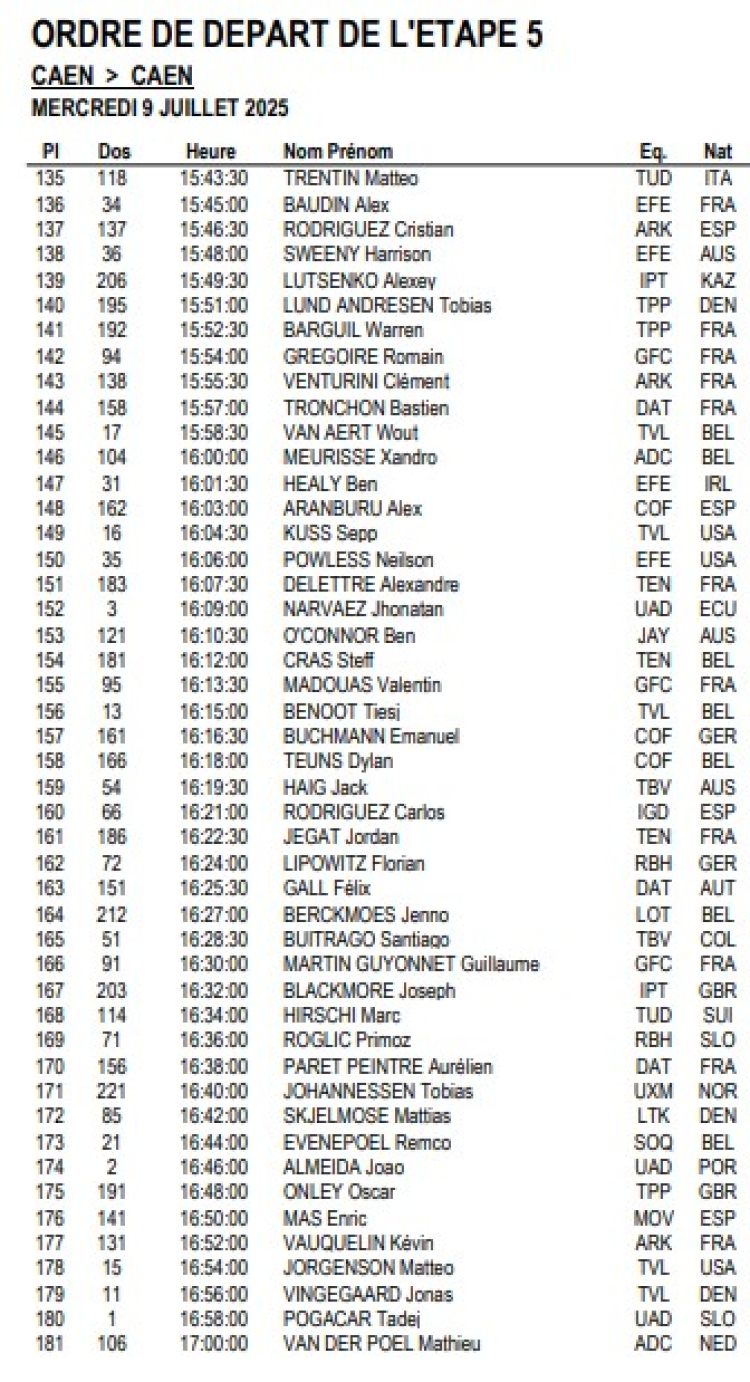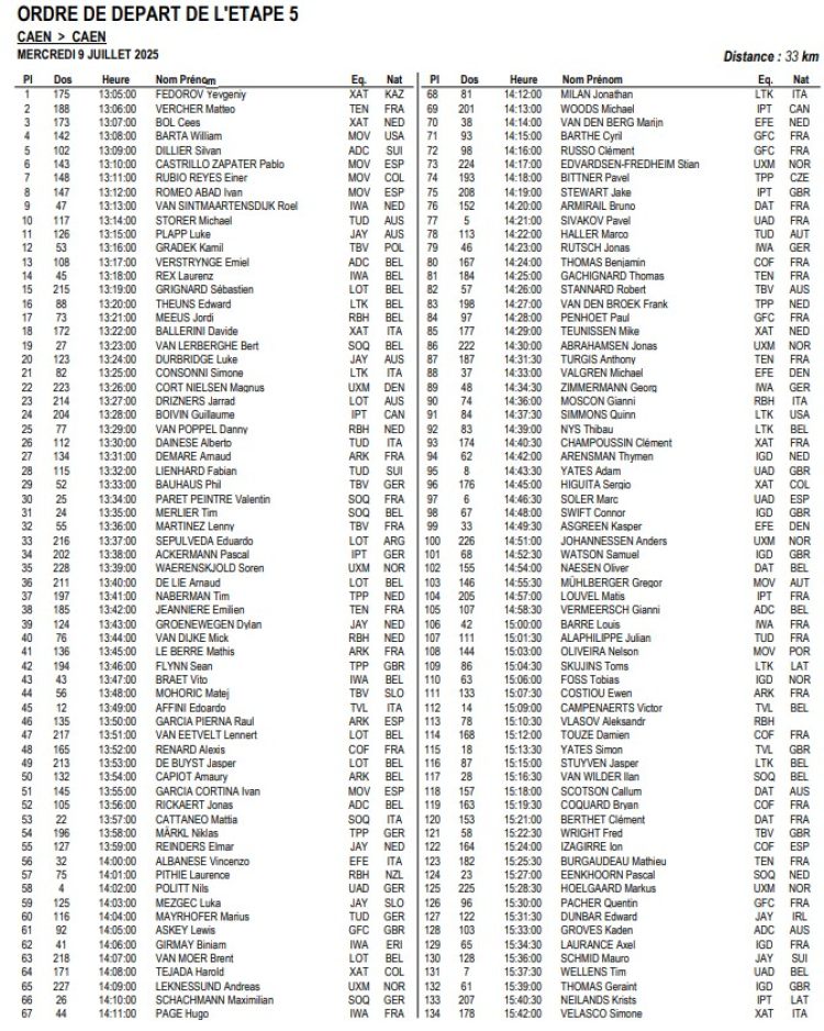 Tour de France - La 5e étape à Caen et son chrono... ordre et horaires de départ