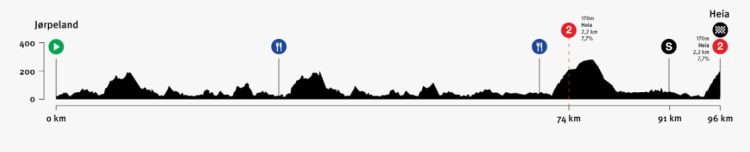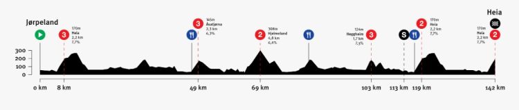 Mais l'étape reine aura certainement lieu le lendemain entre Jørpeland et Heia, avec une nouvelle arrivée au sommet pour puncheurs. Au cours de cette courte 3e étape (142 km), un total de 2500 mètres de dénivelé et six ascensions seront à gravir, avec une double montée vers Heia (2,2 km à 7,7%) dans le final. Une dernière explication entre sprinteurs devrait avoir lieu le dimanche, avec la traditionnelle étape finale en circuit autour de la ville de Stavanger, où le héros local Alexander Kristoff (Uno-X Mobility) visera une quatrième victoire de rang... et pourquoi pas pour le symbole sa 100e en carrière, lui qui en est à 97 pour le moment !