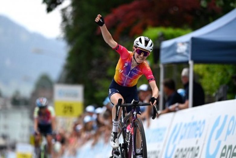 Encore du beau suspens pour conclure ce Tour de Suisse Femmes ! Après 100 kilomètres de course, ponctués par quatre ascensions répertoriées, c'est Niam Fisher-Black (Team SD Worx) qui s'est imposée devant Kasia Niewiadoma (Canyon // SRAM Racing), sa camarade d'échappée. La Polonaise demeure ainsi sans victoire pour sa saison 2023. Avec le parcours difficile, le peloton s'était morcelé de part et d'autre, mais c'est bien Marlen Reusser (Team SD Worx) qui remporte le classement général de son tour national, terminant 3e de l'étape du jour à 37 secondes des deux concurrentes de tête. Carton plein pour la SD Worx ! Il faut également noter le top5 de la jeune Française Eglantine Rayer (Team DSM), seulement âgée de 19 ans. Elle passe la ligne derrière Demi Vollering (Team SD Worx), toutes deux à 1'25" de la gagnante. Le podium du classement général est complété par la Néerlandaise, à 1'02" de sa coéquipière, suivie d'Elisa Longo Borghini (Trek-Segafredo), à 1'17".