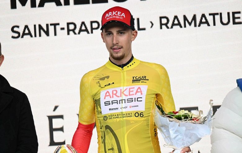 �'� @kevin_vauquelin - @Arkea_Samsic premier maillot jaune de cette 55ème édition du Tour des Alpes-Maritimes et du Var 2023 👕 🤩#Tour0683 #MaillotJaune pic.twitter.com/tdIxxDrWoS