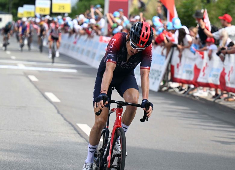 Geraint Thomas a pris la quatrième place d'une 5e étape qui a créé de beaux écarts sur le Tour de Suisse ce jeudi. Le coureur d'INEOS Grenadiers s'est montré l'un des plus forts de cette chaude journée, même s'il n'a pu contester la victoire au Russe Aleksandr Vlasov (BORA-hangsrohe) dans le sprint final à cinq à Novazzano. En rodage avant le Tour de France, qui partira de Copenhague dans deux semaines désormais, le Gallois a montré de très bonnes dispositions. Bien plus que son coéquipier Daniel Martinez, seulement 20e à 53" alors que les deux grimpeurs sont en balance pour le rôle de leader numéro un de la formation britannique. Celui qui occupe désormais la 3e place du général - à 7" de Vlasov - est revenu après l'arrivée sur cette étape.